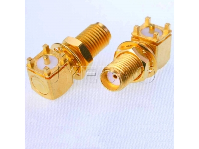 | ВЧ разъем SMA розетка угловая на печатную плату с гайкой |
